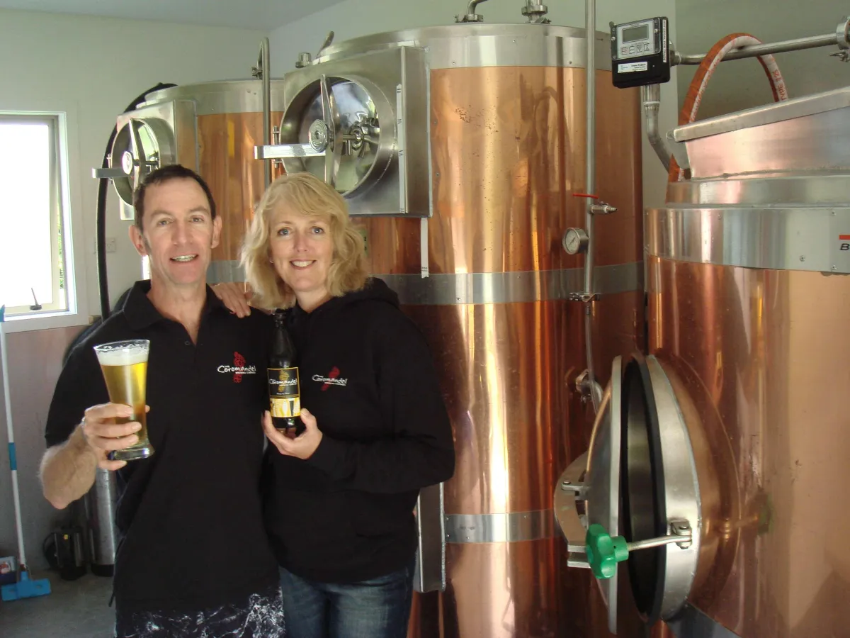 After a year of living in NZ, we decided to make our own beers but it would still be just a hobby. We soon realised that to pay for our expensive hobby we would need to sell some of it commercially. We built a garage at the side of our house in Matarangi in the Coromandel and everyone thought we were nuts! Karen would travel the Coromandel visiting bars and restaurants and offer tastings from a chilli bin. She had a 100% success rate but, hey, she can sell and it was a pretty good drop apparently.
